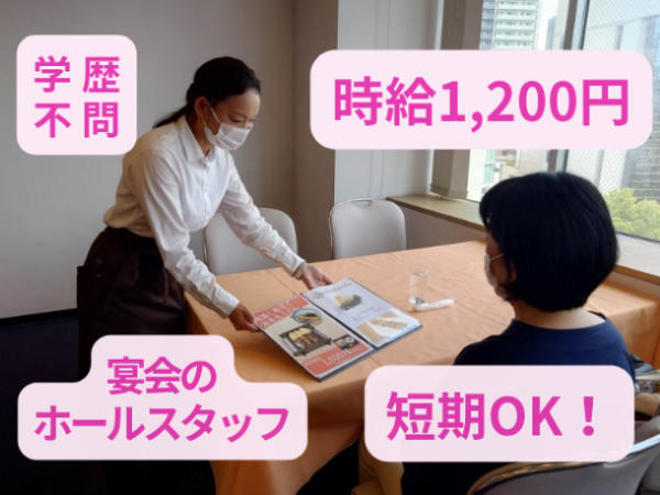 \宴会時ホールスタッフ/ パート・アルバイト★時給1200円★日祝休み ★交通費全額支給 ★学歴不問 ★経験活かせる ★食事補助あり (勤務地:大阪科学技術センター )